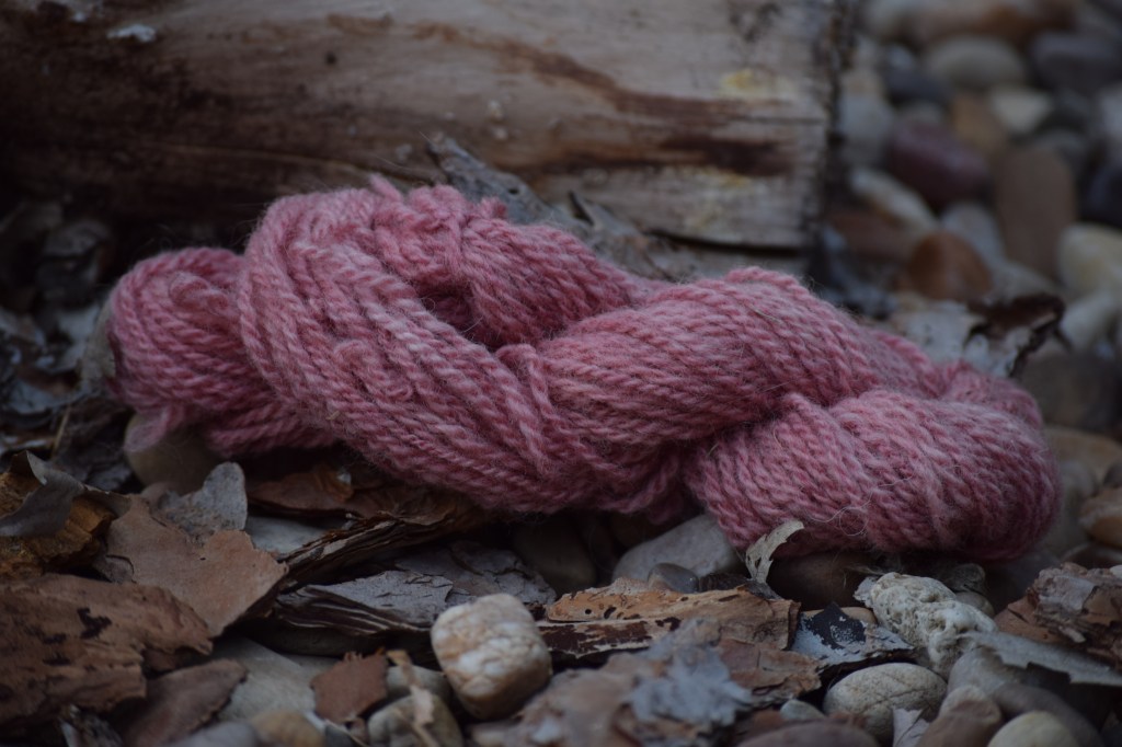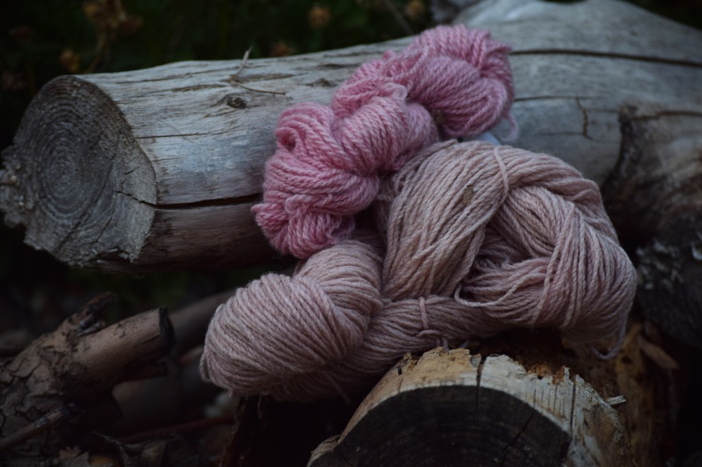 As I still had quite a lot of colour on my dyebath, I decided to add a smaller skein of 100% merino. With this second bath I obtained a pretty dust pink, a lighter version of the purple-fuchsia obtained on the first bath.