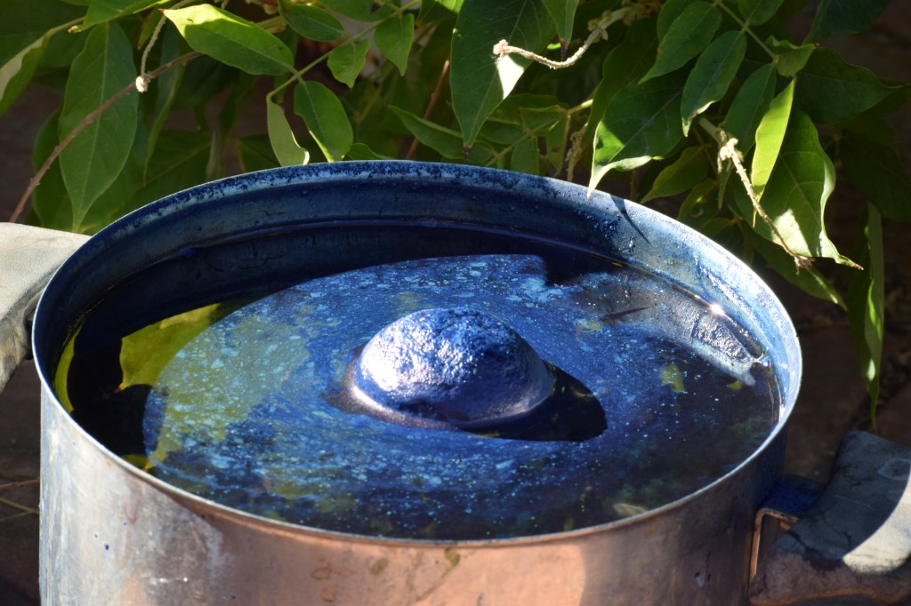 Henna (Lawsonia inermis) is often used to create organic indigo vats, as it serves the same function as fructose, it acts as a reducing agent, helping to create an alkaline solution by “taking away the oxygen”. With henna indigo vats, it’s possible to obtain very rich and deep blue shades that are very colourfast.
