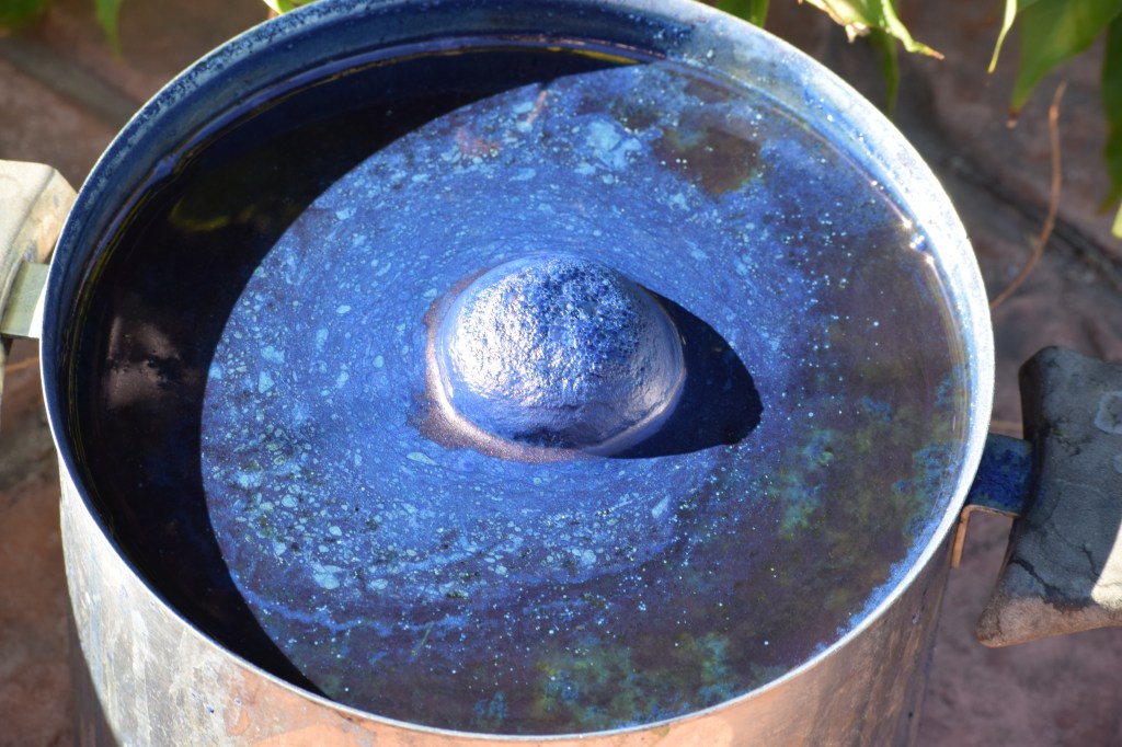 - Filter the henna mix & pour the liquid gradually onto the mason jar with the mix of indigo pigment & the slaked lime. Mix everything together with a wooden spun, careful not to introduce oxygen in the mix.