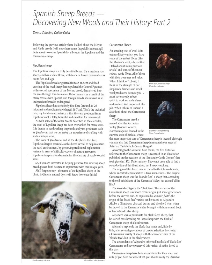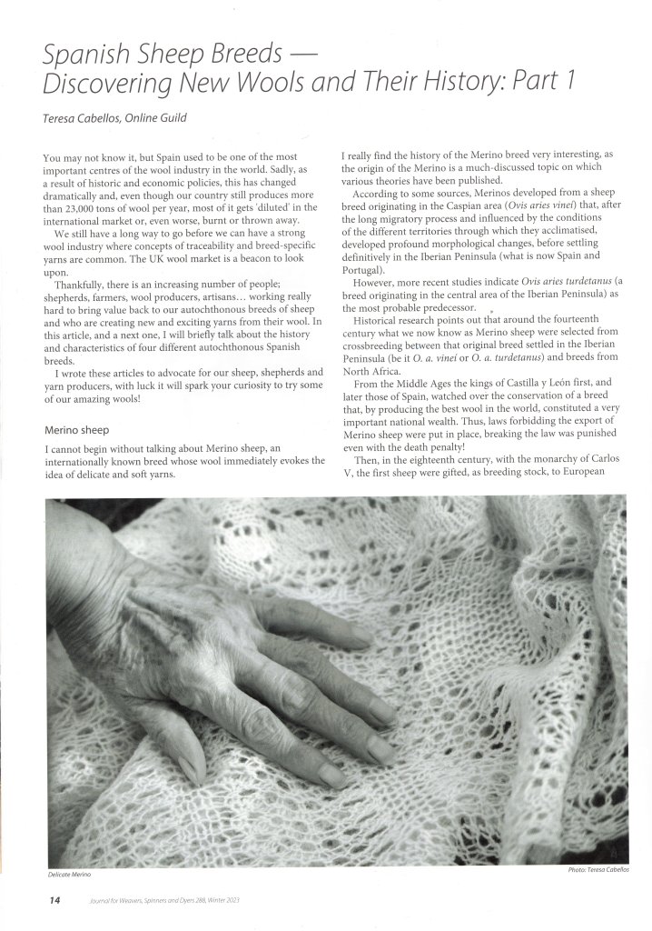 A new series of my articles describing a few of the autochtonous breeds of the Iberian Peninsula have been published by the Journal for Weavers, Spinners & Dyers.