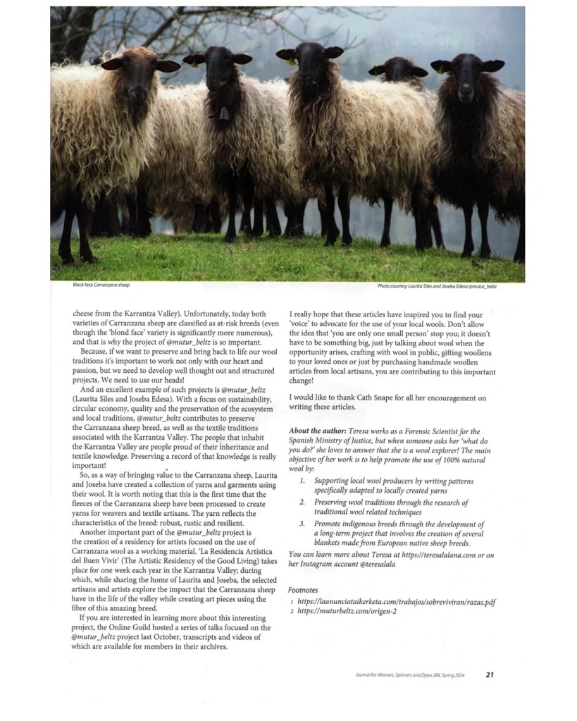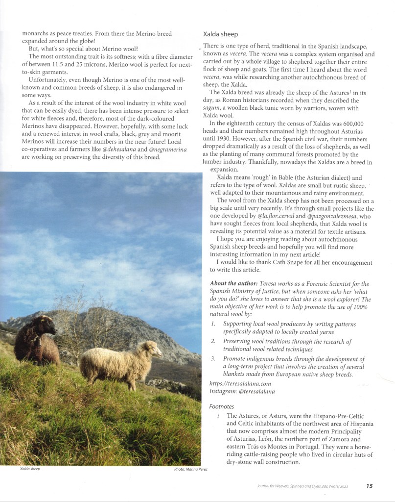 The second part of the article foccusses on a very ancient breed, the Xalda, a breed that Roman historians recorded as the sheep of the Astures. Nowadays, is thanks to the hard work of people like Marina Perez from @la.flor.cerval and Paz Mesa that the wool of Xalda sheep is finding a renewed interest for textile artisans.