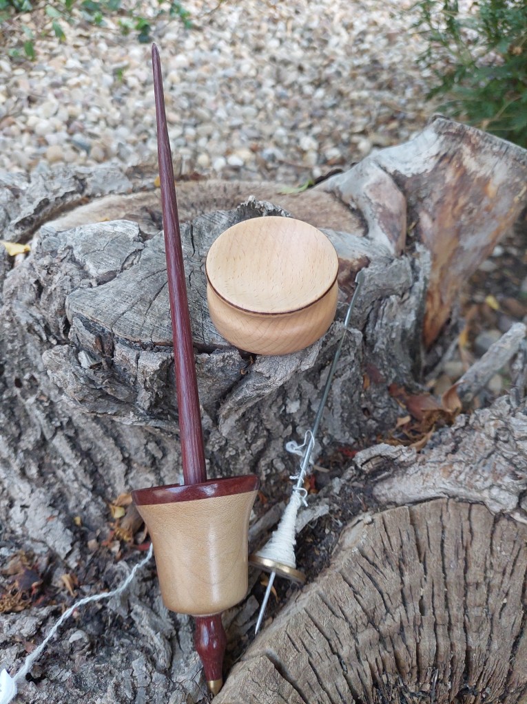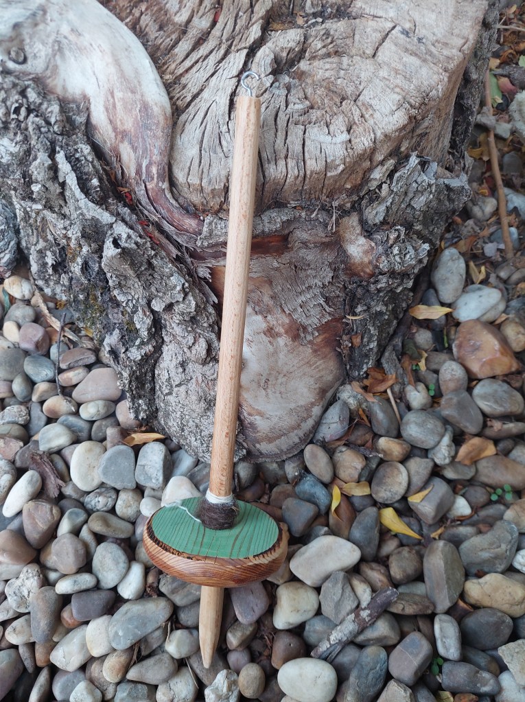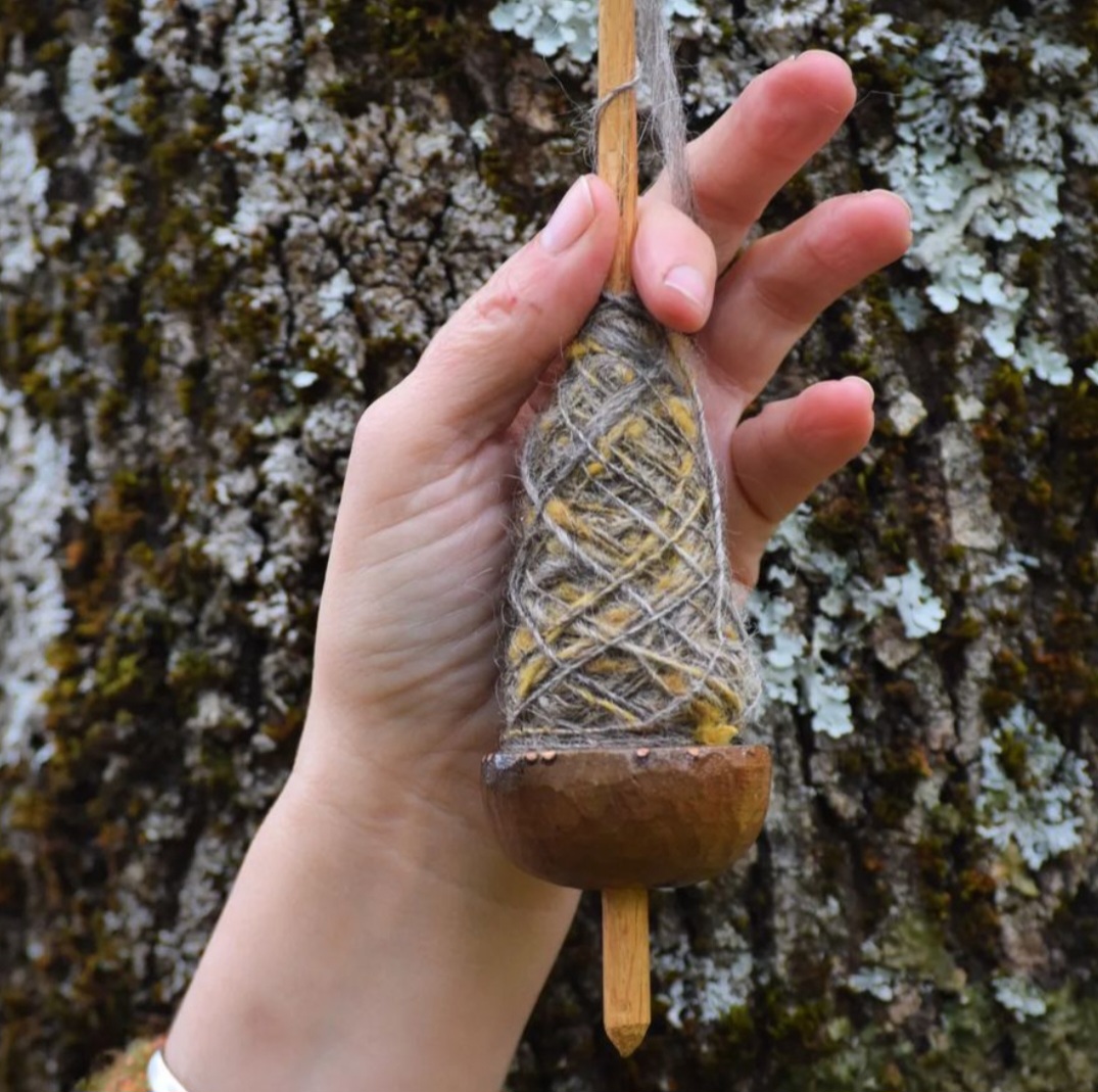 This is an ancestral type of spindles, which origins can be traced to the Basque region, dating from the neolithic. Txoatiles are basically single cross-arm spindles, with a very simple, yet incredibly beautiful construction, one shaft that runs through a diabolo shaped whorl. The name “txoatile” comes from the basque words “txori” (meaning bird) & “artilea” (meaning wool) & really reflect the way the txoatile spindle spins… like a dancing bird!