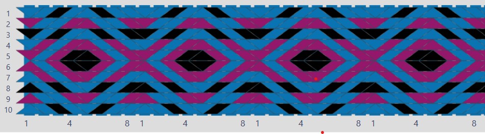 It’s important to know that the pattern will be determined by the way the tablets are threaded (the colours on each hole & how the tread is passed) & the sequence the tablets are turned