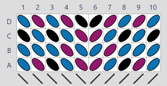 Once you have chosen your design, you have to “dress” your tablets (i.e. thread them). The pattern you choose should have a chart similar to the one shown.